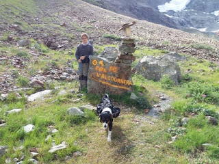 Après cet intermède matinal, nous continuâmes notre ascension vers le Col et après une succession de rochers et la montée dans un pierrier, je me disais que nous allions arriver au Col… grave erreur ! C’est en arrivant en haut de ce pierrier qu’est apparu devant nous LA difficulté : la dernière montée dans une succession de pierres et d’éboulis, avec de la neige au sommet… j’avais l’impression de me trouver dans le Seigneur des Anneaux, lorsque Frodon et Sam gravissent la montagne du Mordor pour y jeter l’Anneau… Même (à peu près) préparés physiquement, je dois avouer que cette montée fût la plus pénible du trek, les pierres et l’altitude ne font pas bon ménage… par contre pour Leïa, aucun problème, elle crapahutait sur et entre les blocs et les pierres comme une chèvre ! Mais belle montée en altitude, bien physique...