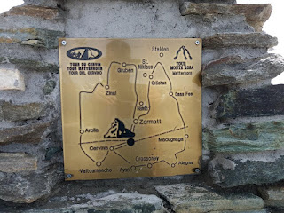 La veille nous sommes arrivés à Zinal, c’était le départ du tour pour nous ; je parque la voiture pour la semaine, on prend notre chambre d’hôtel, dîner et dodo…
